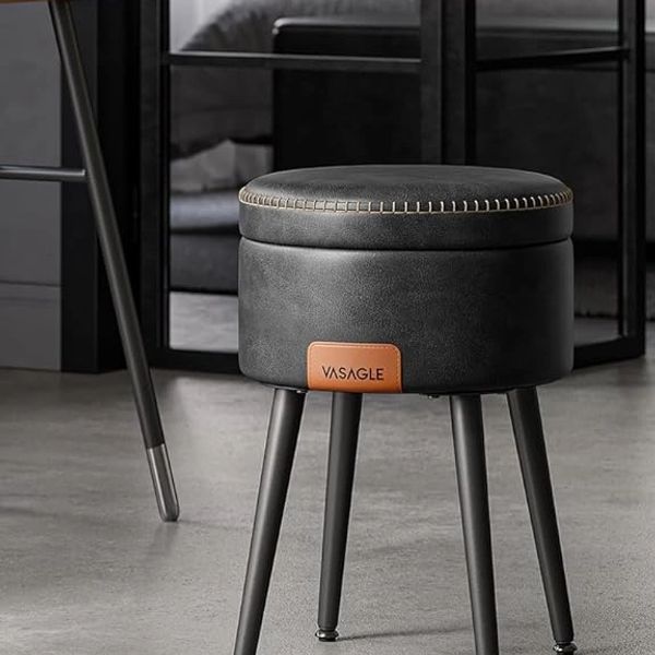 This stool is cute yet masculine, and will go with almost anything. You can even store a few thing under the seat like extra makeup, brushes, creams and more. It's light weight and sturdy too. It's a must have for a makeup area if you need something small but still attractive.